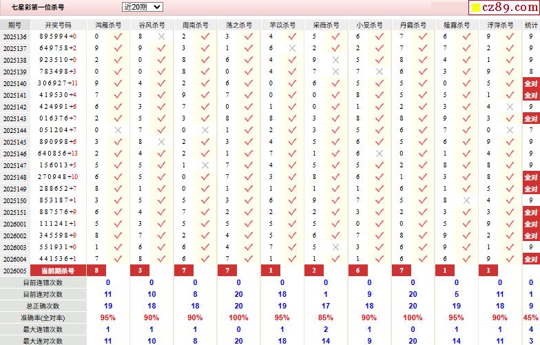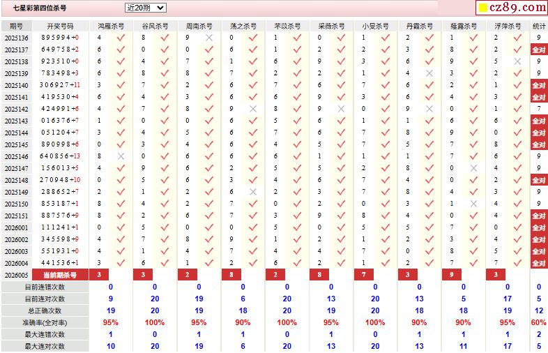 > 005期彩票专家体彩七星彩定位杀号图表